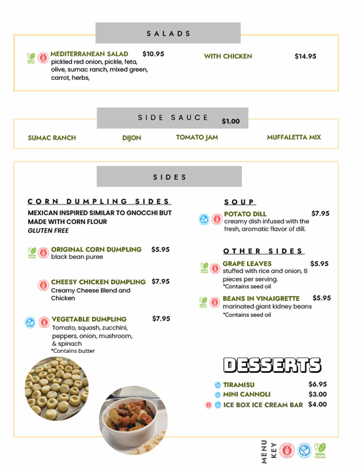 I just ate here for lunch (got to go food) and had the coconut avocado house smoothie while waiting for my order. Cute place. Friendly service. I got a spinach, mozzarella and Italian sausage cascione (stuffed and griddled homemade flatbread) which was fantastic!!! I also got the grilled ham and cheese with the cheddars Gruyère with black truffles - also really good! (No judging me for my big order 😂) I would definitely go back. They also have pre-packaged to go items (soups, salads, sandwiches) that also looked good. Located next to Inyo but not big signage yet.